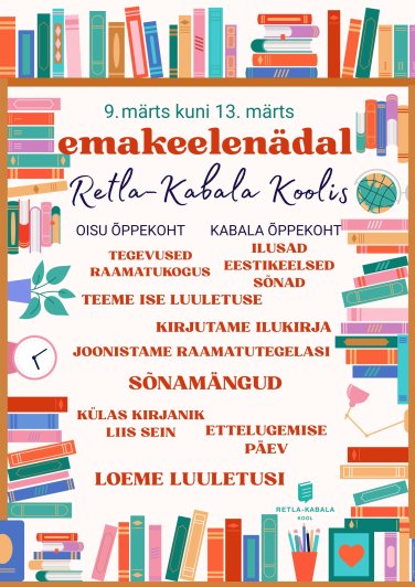 Asukoht Retla-Kabala Kool Huvitegevus Õppetöö Ava foto Vaata rohkem sündmusi Ava foto Avaldatud 05.03.2026. Viimati muudetud 05.03.2026.