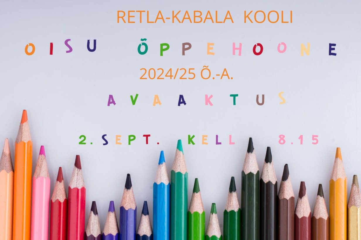 2024/25 õppeaasta avaaktused Retla-Kabala Koolis toimuvad 2.septembril Oisu õppekohas algusega kell 8.15 ja Kabala õppekohas algusega kell 10.00.