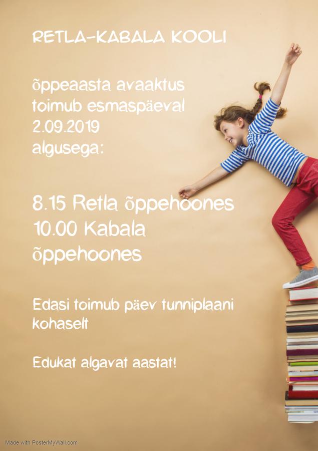 Retla-Kabala Kooli õppeaasta avaaktus toimub esmaspäeval, 2.09.2019 algusega:
